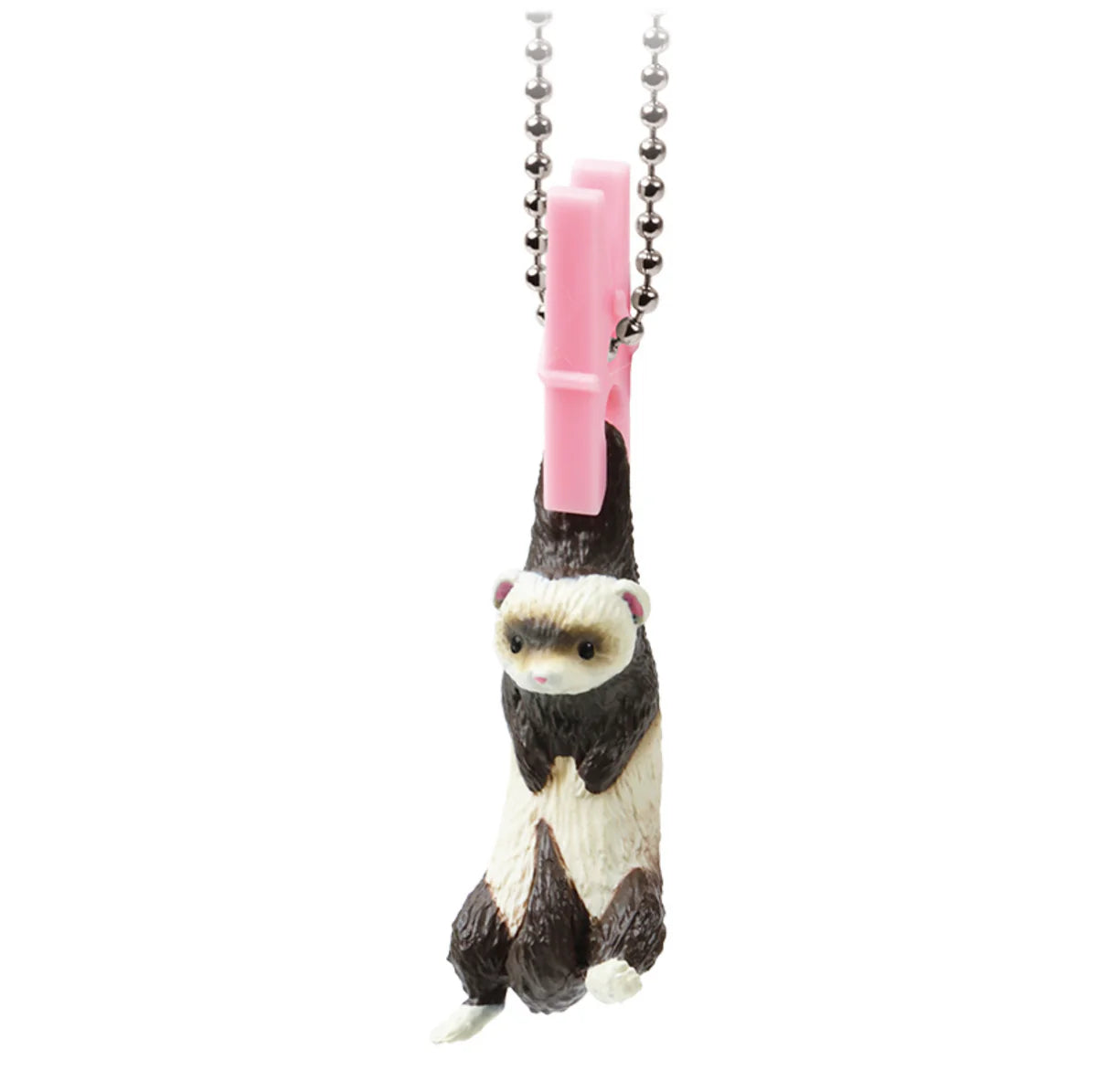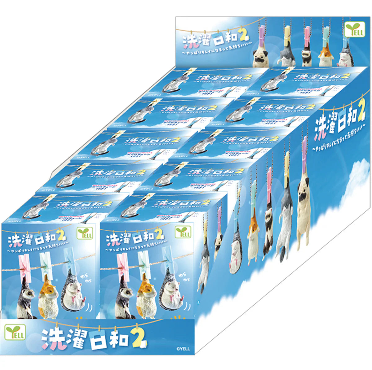 A blind box containing keychain figures of adorable animals being washed and swaying as they dry