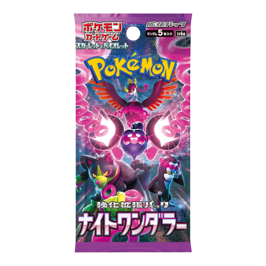 Night Wanderer (Japanese: 強化拡張パック ナイトワンダラー Enhanced Expansion Pack: Night Wanderer), and is the fifth Japanese subset released during the Scarlet & Violet Era. This special expansion mainly focuses on the Mythical Pokémon Pecharunt and the Loyal Three.