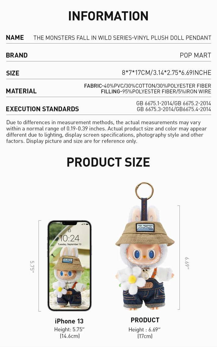 POP MART THE MONSTERS Fall in Wild Series Vinyl Plush Doll Pendant